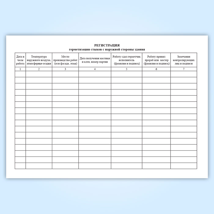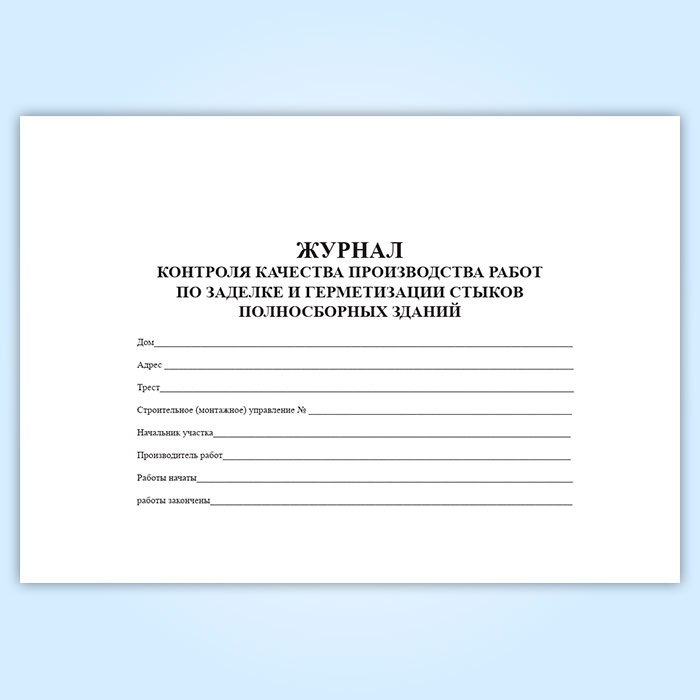 Журнал контроля качества производства работ по заделке и герметизации стыков полносборных зданий