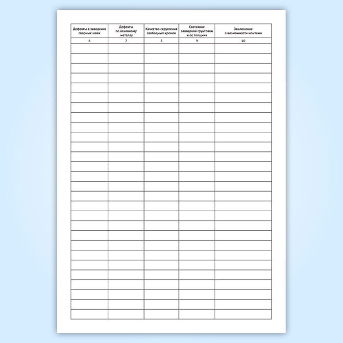 Журнал освидетельствования металлоконструкций при входном контроле имеет графы:
