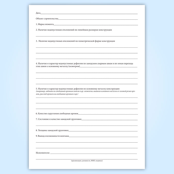 Журнал освидетельствования металлоконструкций при входном контроле