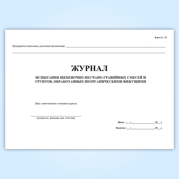 Журнал испытания щебеночно-песчано-гравийных смесей и грунтов, обработанных неорганическими вяжущими