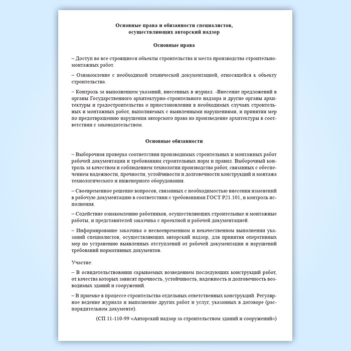 Важной обязанностью специалистов, осуществляющих авторский надзор, является информирование заказчика о несвоевременном и некачественном выполнении их указаний для принятия оперативных мер по устранению выявленных отступлений от рабочей документации и нарушений требований нормативных документов.