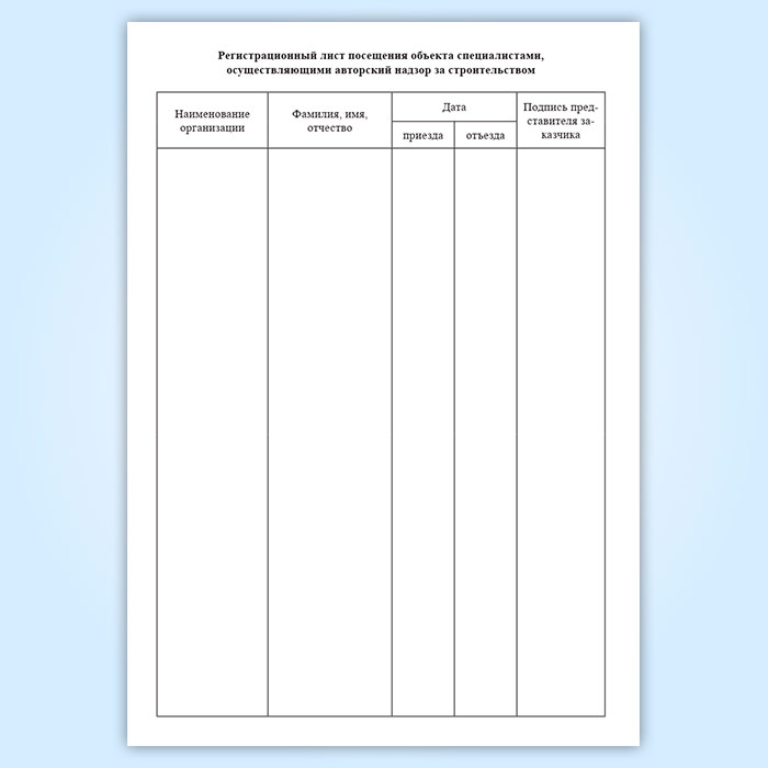 4. Регистрационный лист посещения объекта специалистами, осуществляющими авторский надзор за строительством: