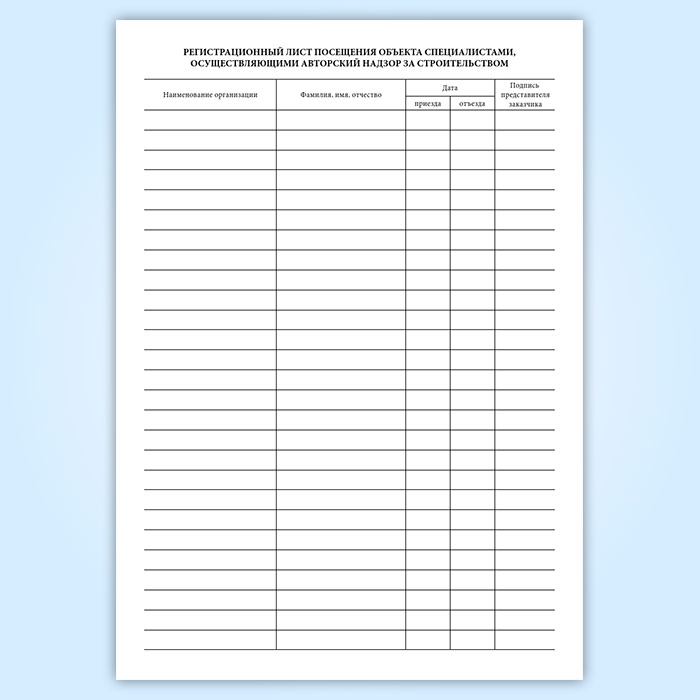 - Регистрационный лист посещения объекта специалистами, осуществляющими авторский надзор за строительством