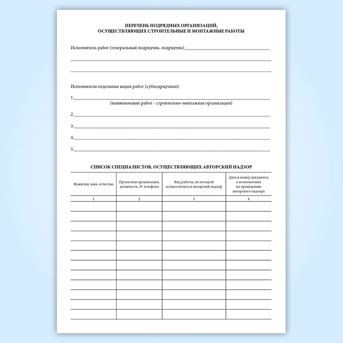- Перечень подрядных организаций, осуществляющих строительные и монтажные работы