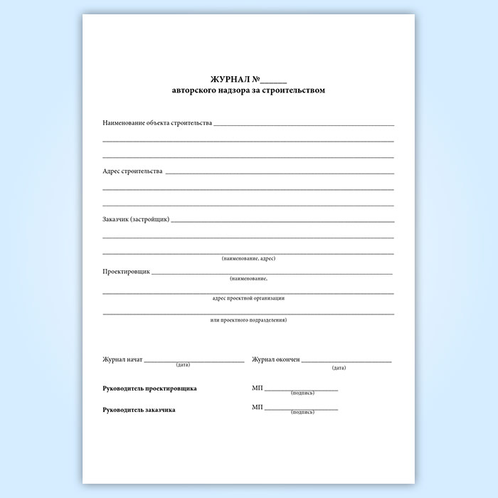 Журнал авторского надзора за строительством (СП 246.1325800.2016)