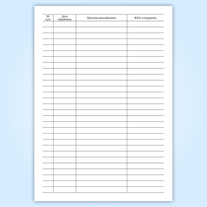 Журнал учета дезинфекции бытового городка