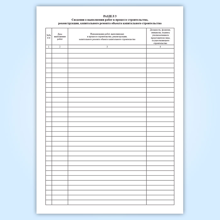 Сведения о выполнении работ в процессе строительства, реконструкции, капитального ремонта объекта капитального строительства