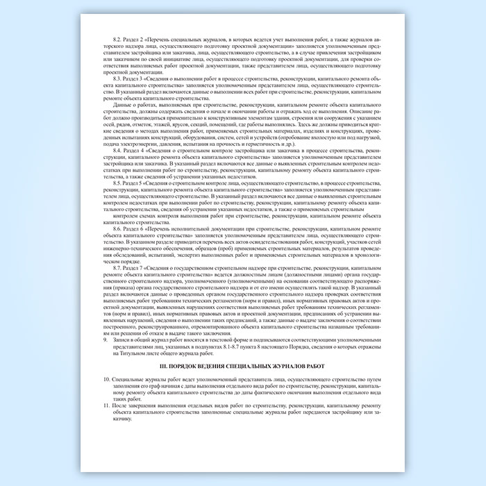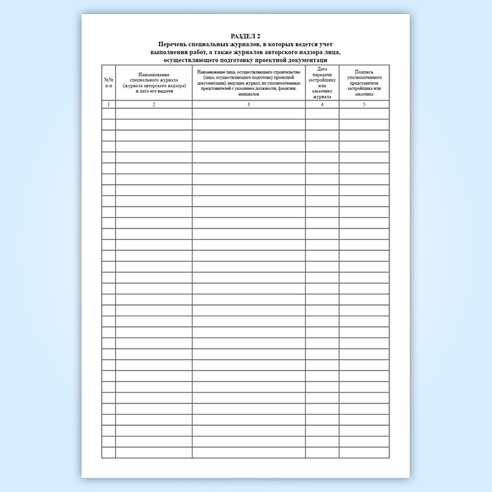 Перечень специальных журналов, в которых ведется учет выполнения работ, а также журналов авторского надзора лица, осуществляющего подготовку проектной документации