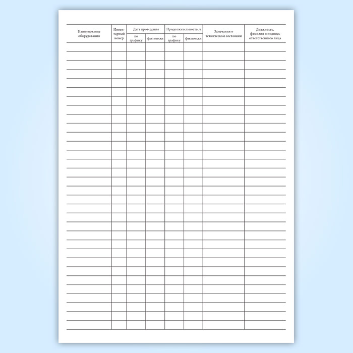 Журнал учета проведения технического обслуживания оборудования (форма 6.12)