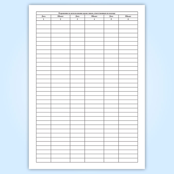 Разрешение на использование крана лицом, ответственным по надзору