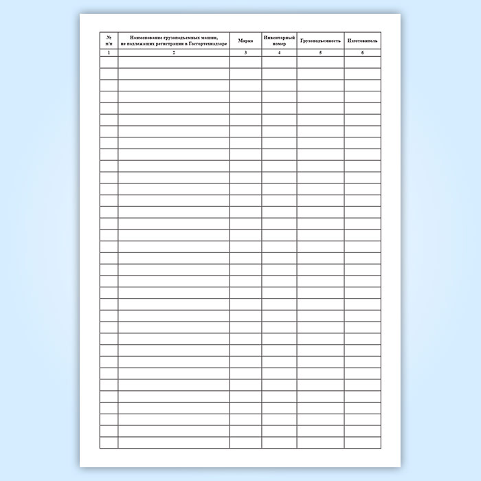 Журнал учета грузоподъемных машин и съемных грузозахватных приспособлений