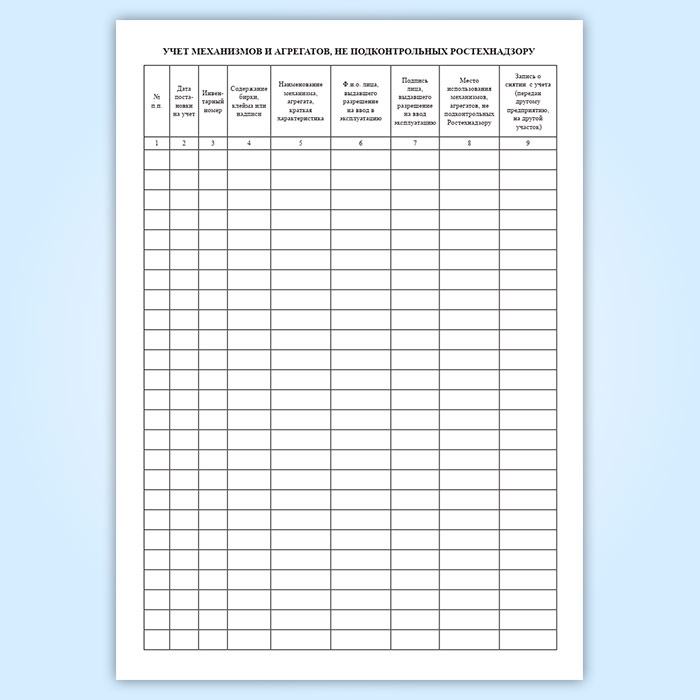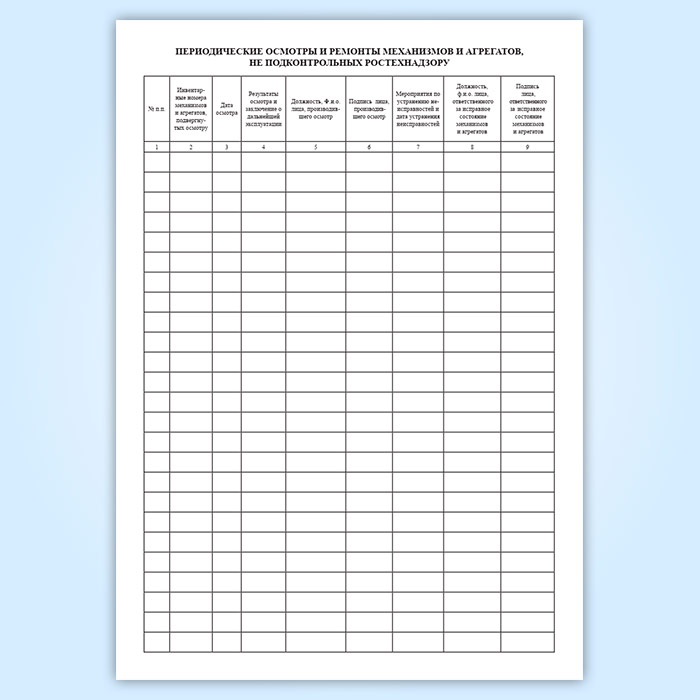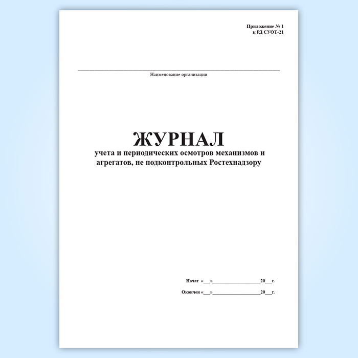Журнал учета и периодических осмотров механизмов и агрегатов, не подконтрольных Ростехнадзору