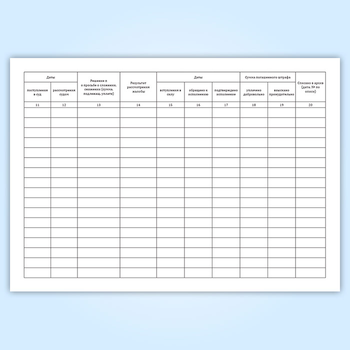 Журнал учета судебных штрафов, налагаемых по гражданским, административным делам (форма № 14)