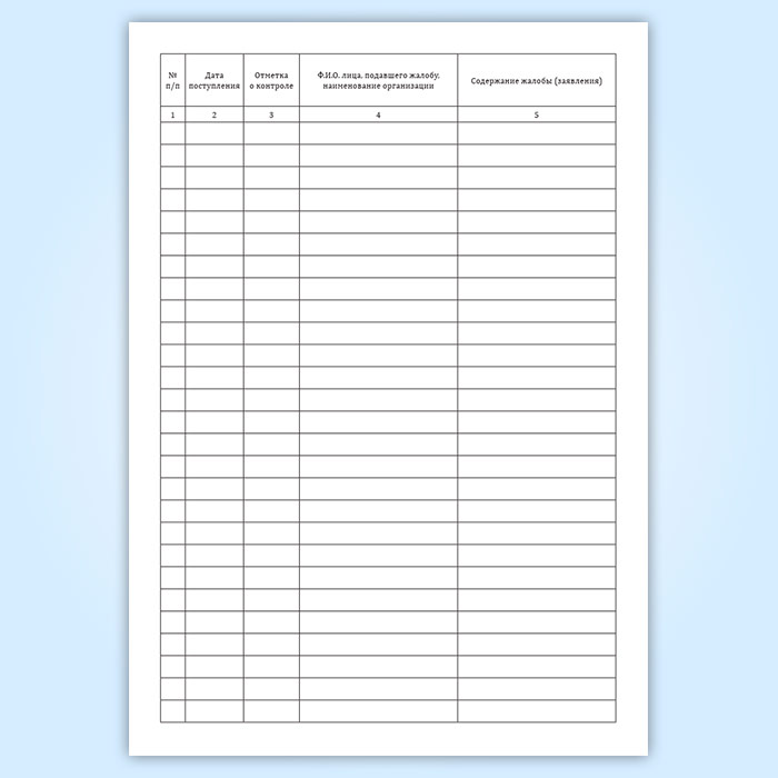 Журнал регистрации предложений, заявлений и жалоб на работу суда, не подлежащих рассмотрению в порядке, установленном уголовно-процессуальным и гражданско-процессуальным законодательством (Форма №23) имеет графы: