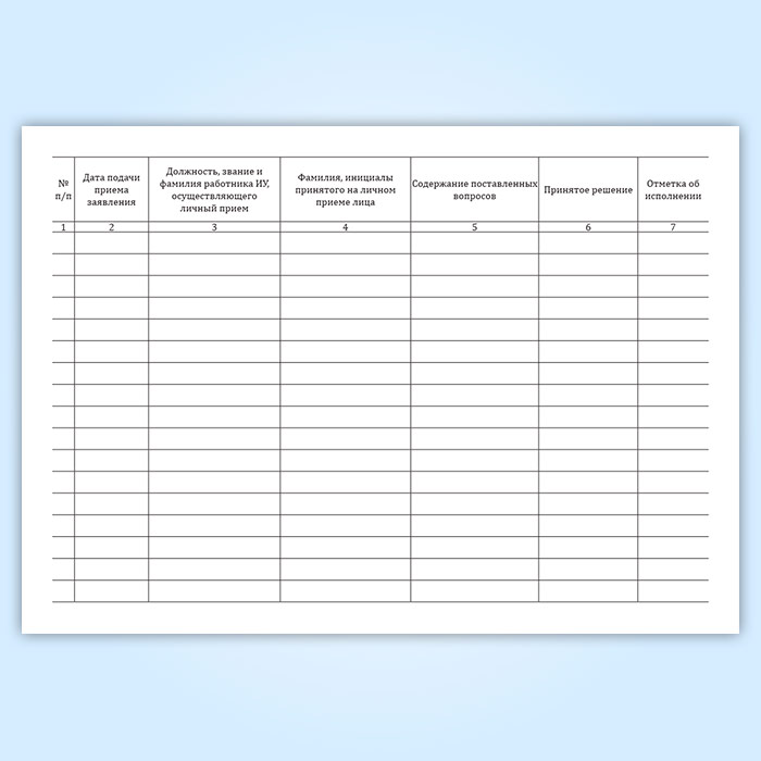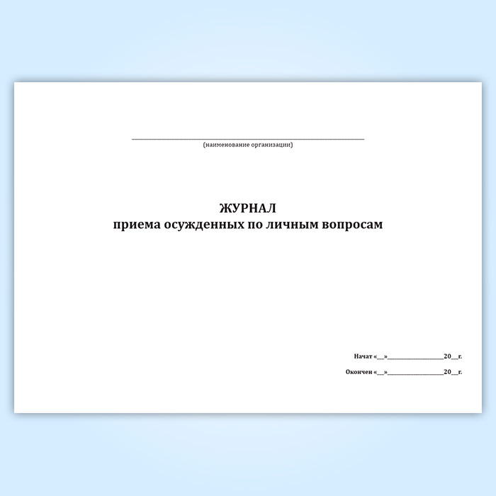 Форма журнала приема осужденных по личным вопросам соответствует Приложению №9 к Правилам внутреннего распорядка исправительных учреждений.