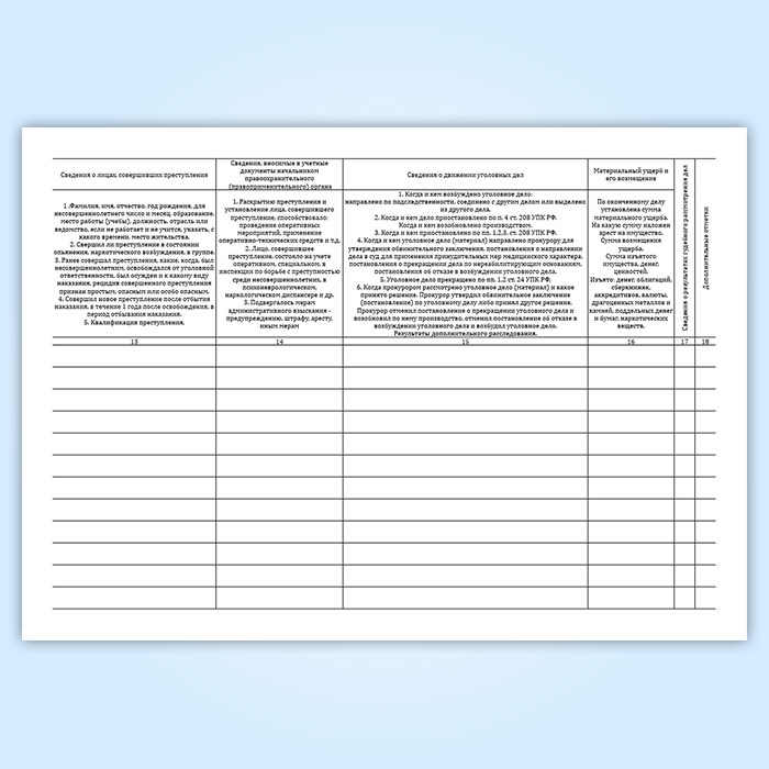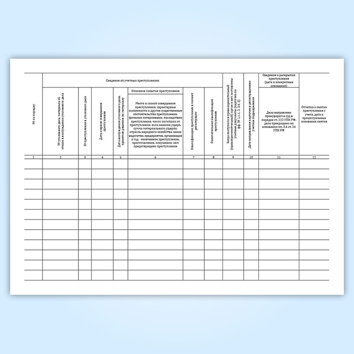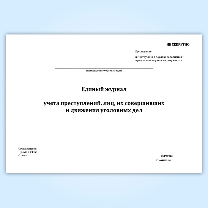 Форма единого журнала учета преступлений, лиц, их совершивших и движения уголовных дел соответствует Приложению к Инструкции о порядке заполнения и представления учетных документов.