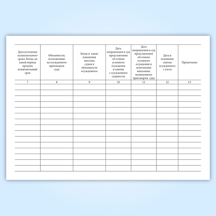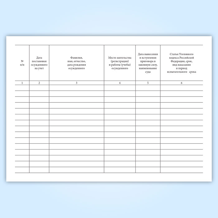 В день поступления копии приговора (определения, постановления) суда инспекция регистрирует его в журнале учета условно осужденных.