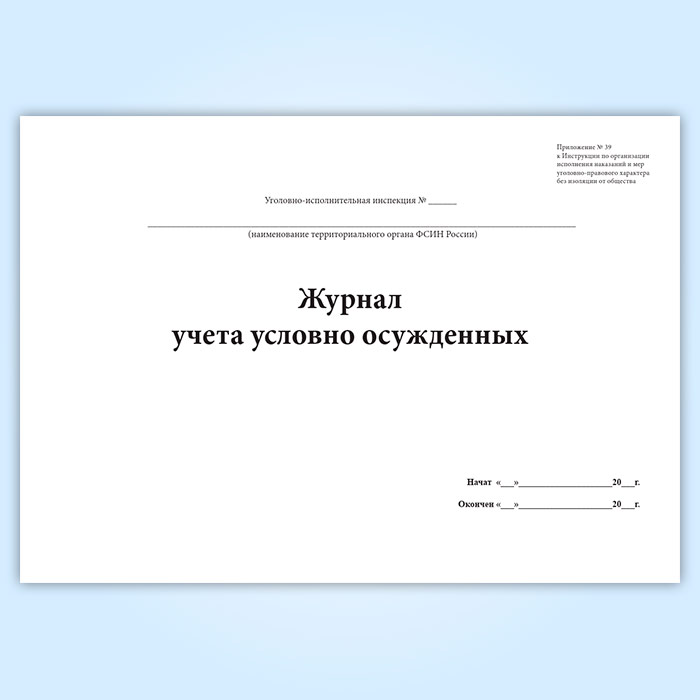 Форма журнала соответствует Приложению N 39 к "Инструкции по организации исполнения наказаний и мер уголовно-правового характера без изоляции от общества".
