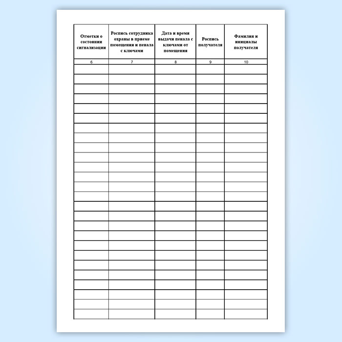 7. Роспись сотрудника охраны в приеме помещения и пенала с ключами