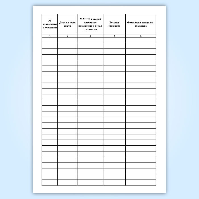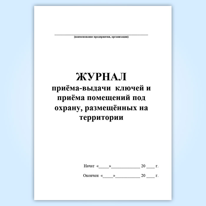 Журнал приема-выдачи ключей и приема помещений под охрану, размещенных на территории