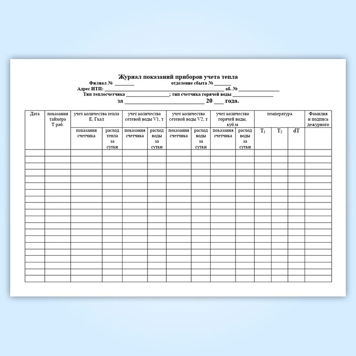 Журнал учета тепловой энергии и теплоносителя в водяных (паровых) системах теплопотребления