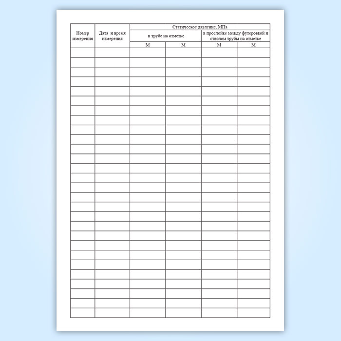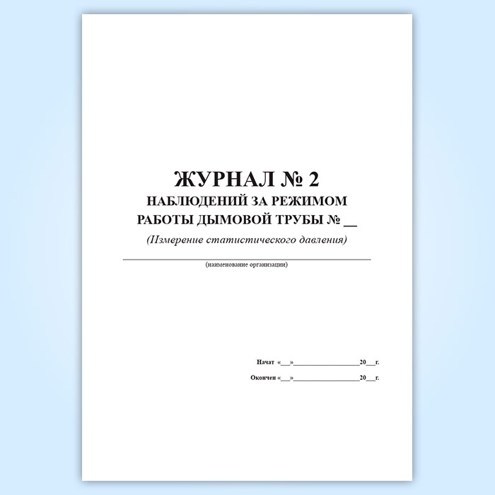 Форма журнала № 2 наблюдений за режимом работы дымовой трубы (измерение статистического давления) соответствует Приложению 4 к инструкции, утвержденной РАО "ЕЭС России" РД 153-34.1-21.523-99 "Инструкция по эксплуатации железобетонных и кирпичных дымовых труб и газоходов на тепловых электростанциях" от 30.06.1999 года.