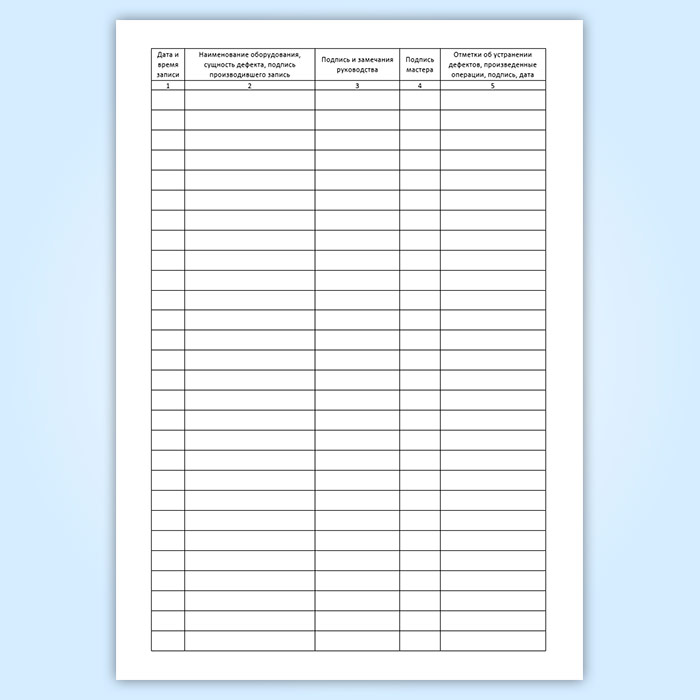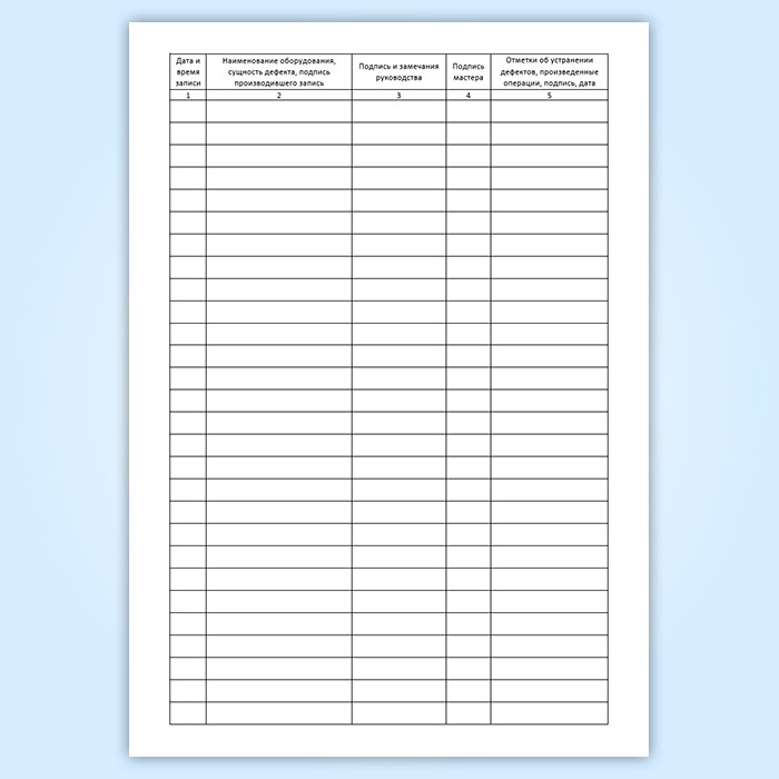 Журнал дефектов и неполадок оборудования (форма 2)