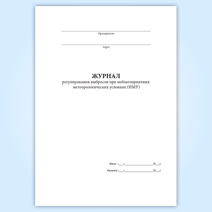 Форма журнала регулирования выбросов при неблагоприятных метеорологических условиях (НМУ) разработана на основании Положения РАО "ЕЭС России" N РД 153-34.0-02.314-98 « О регулировании выбросов в атмосферу в период неблагоприятных метеорологических условий на тепловых электростанциях и в котельных» от 29.05.1998 года.