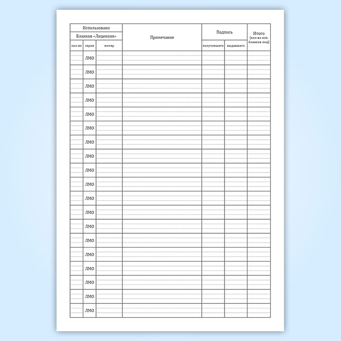 Книга учета бланков лицензий на розничную продажу алкогольной продукции