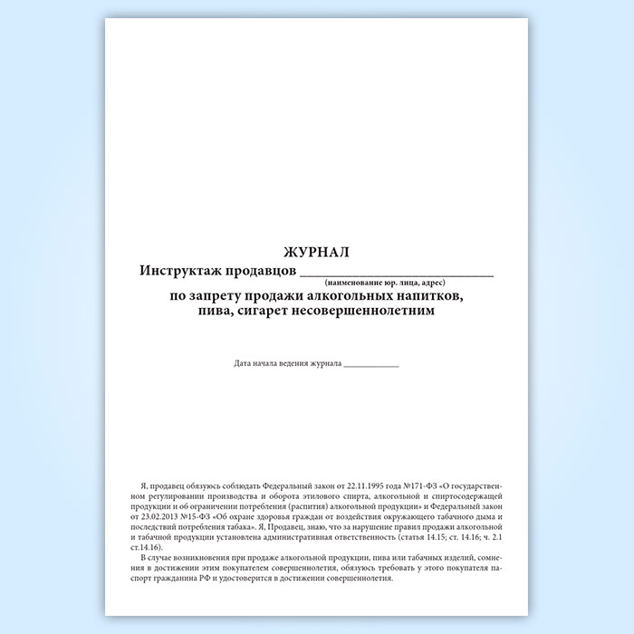 Журнал инструктажа продавцов по запрету продажи алкогольных напитков, пива, сигарет несовершеннолетним