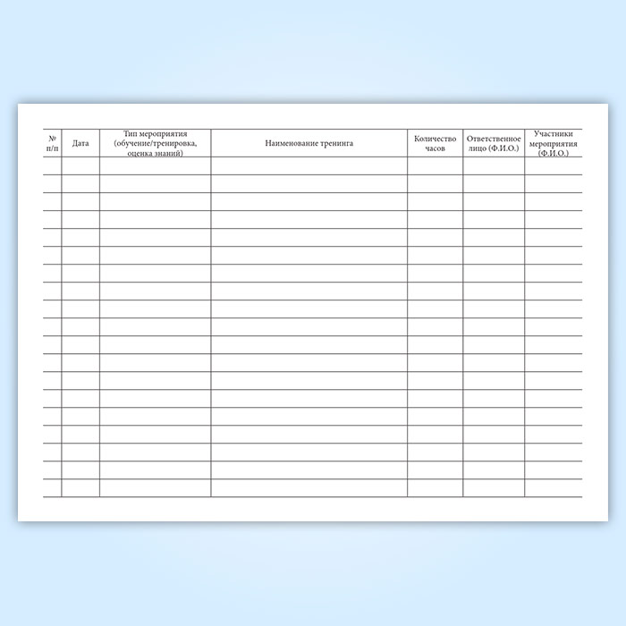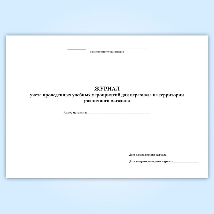 Учет проведенных учебных мероприятий для персонала на территории розничного магазина ведут с помощью журнала, в котором фиксируют дату, тип мероприятия, а также участников и ответственнное лицо с обязательным указанием ФИО.