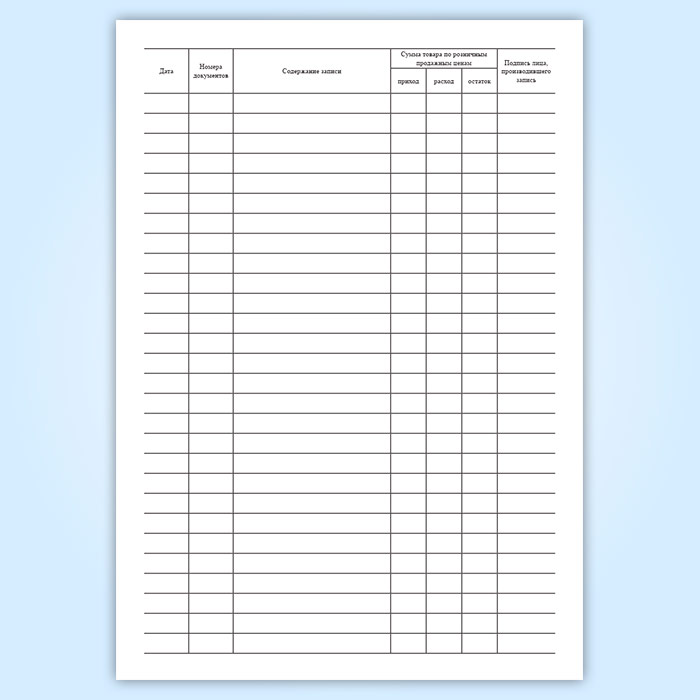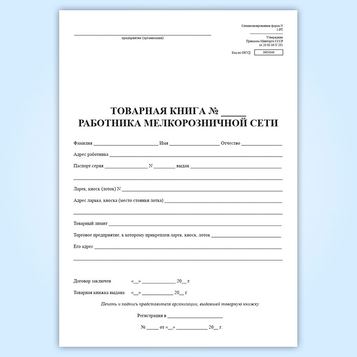 Товарная книга работника мелкорозничной сети. Специализированная (форма № 1-РТ)