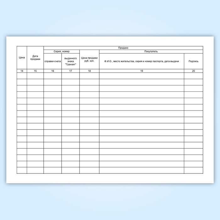 Графы журнала учета приема на комиссию и продажи транспортных средств (автомобилей, мотоциклов) и номерных узлов (агрегатов) (Форма № КОМИС-8):