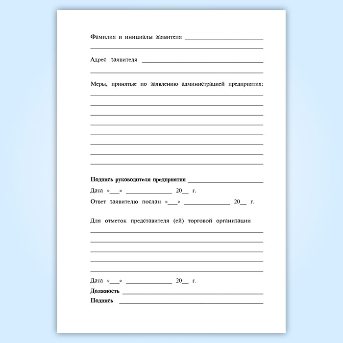 Книга жалоб и предложений является документом строгой отчетности и не может списываться до ее заполнения.