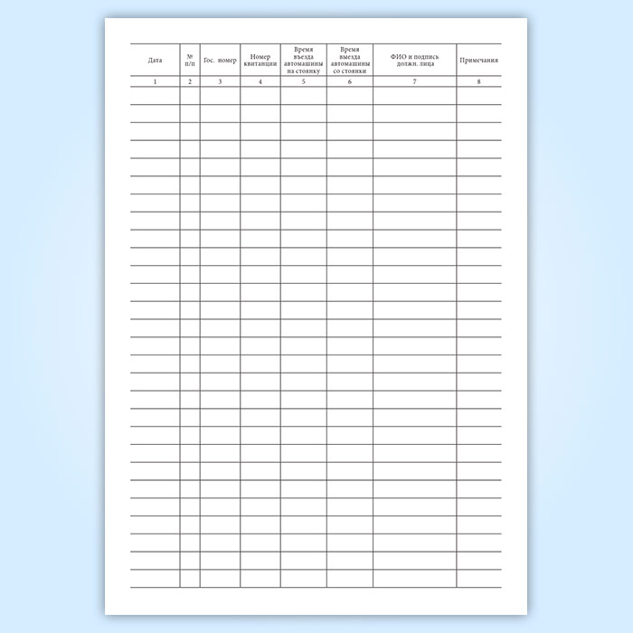 Журнал учета автомобилей на автостоянке