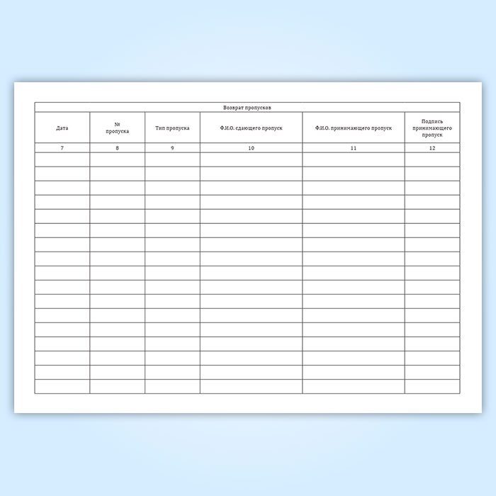 Учет движения выданных и возвращенных пропусков в организации ведется в журнале