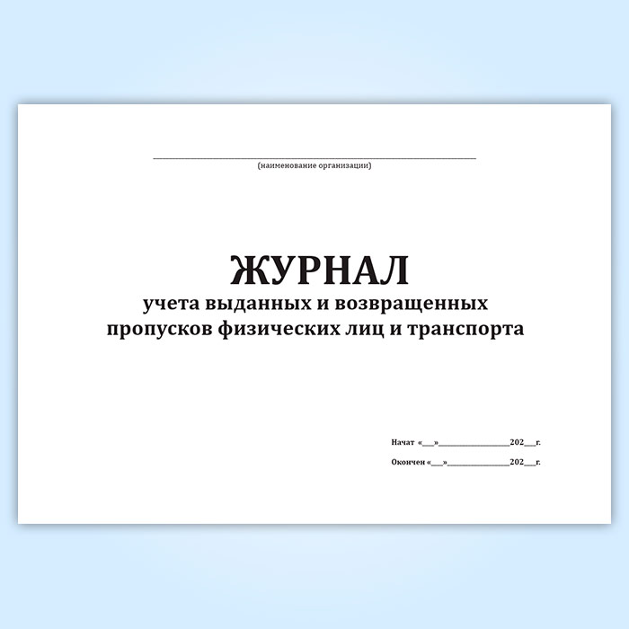 Журнал учета выданных и возвращенных пропусков физических лиц и транспорта