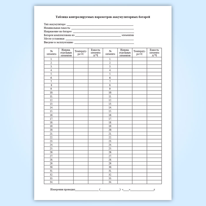 Журнал регистрации технического состояния аккумуляторных батарей