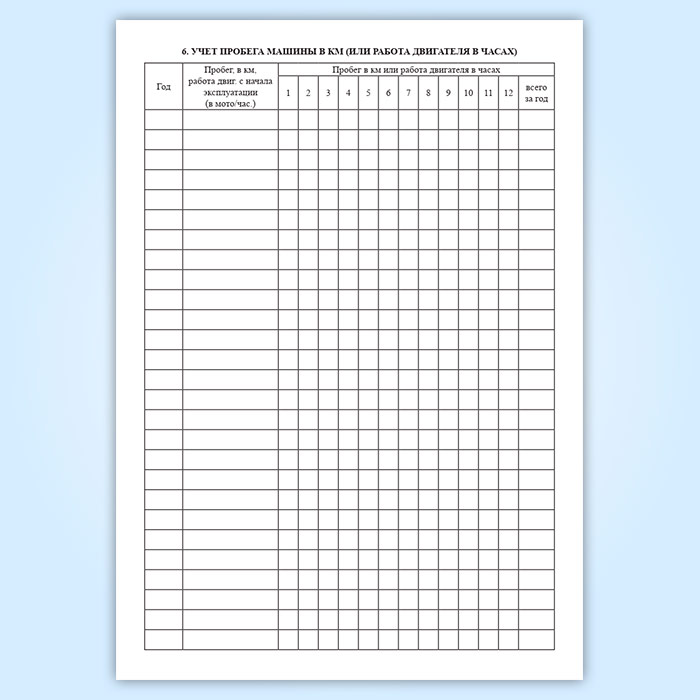 6. Учет пробега машины в км (или работа двигателя в часах)