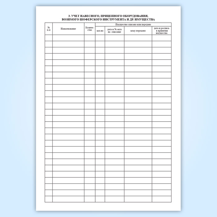 3. Учет навесного, прицепного оборудования, возимого шоферского инструмента и др. имущества
