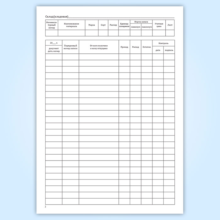 Форма журнала складского учета материалов соответствует Приложению №6 к Инструкции о порядке ведения учета, отчетности и расходования горюче-смазочных материалов в гражданской авиации