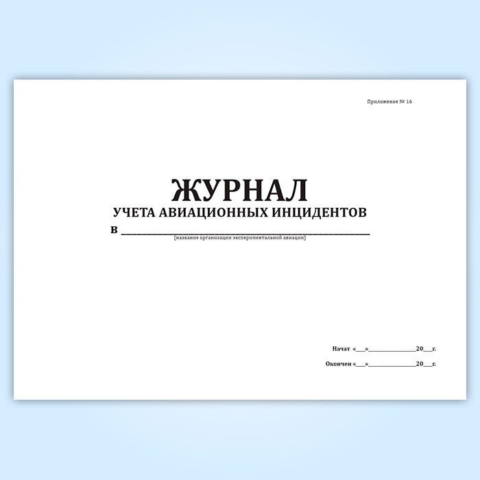 Форма Журнала учета авиационных инцидентов соответствует Приложению 16 к "Правилам расследования авиационных происшествий и инцидентов с экспериментальными воздушными судами в Российской Федерации".