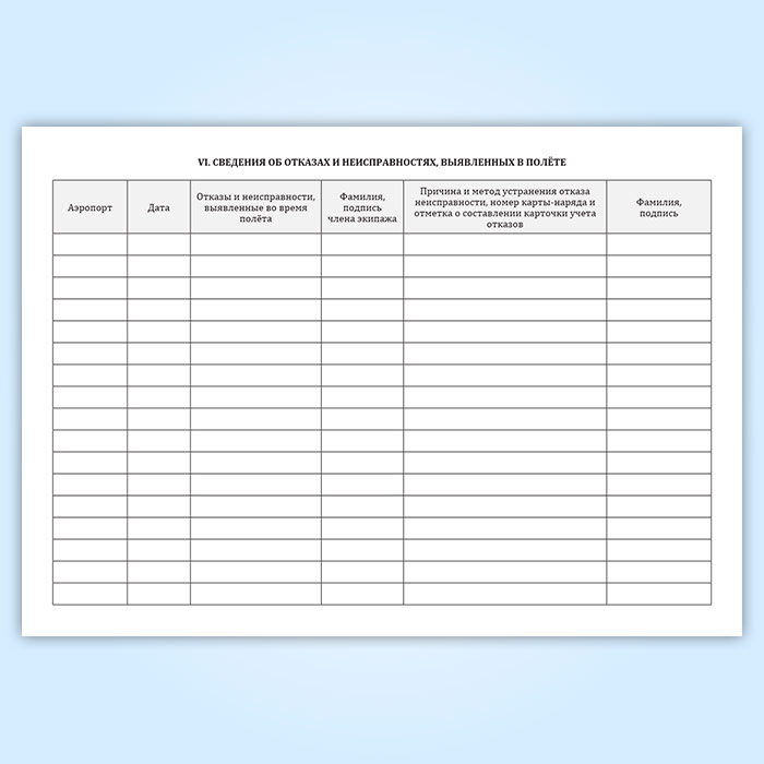VI Сведения об отказах и неисправностях, выявленных в полете