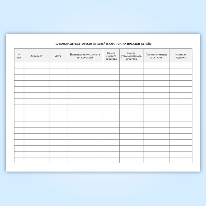 IV Замена агрегатов или деталей в аэропортах, посадки за рейс