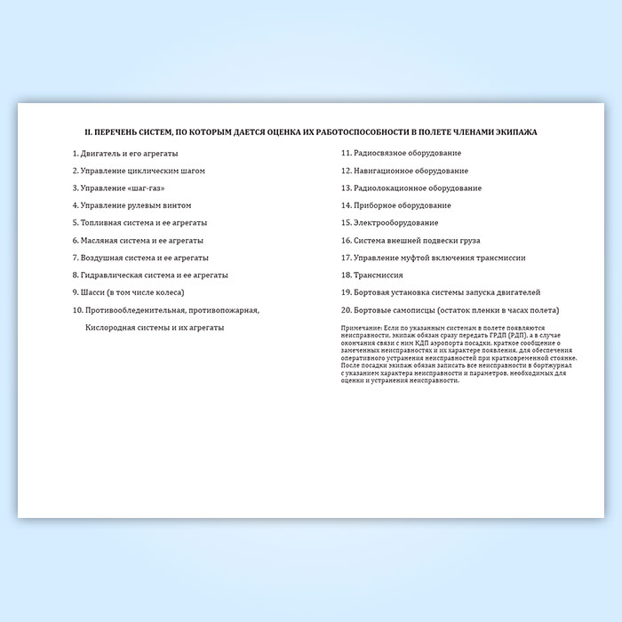 II Перечень систем, по которым дается оценка их работоспособности в полёте членами экипажа