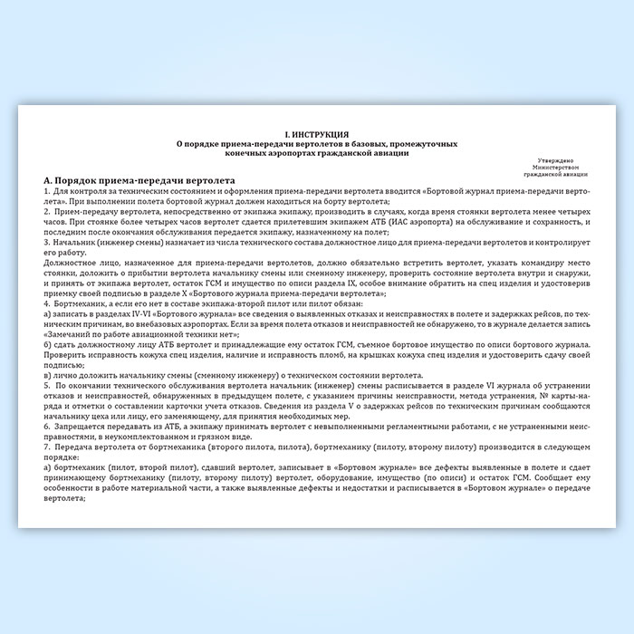 I Инструкция о порядке приема-передачи вертолетов в базовых, промежуточных и конечных аэропортах гражданской авиации