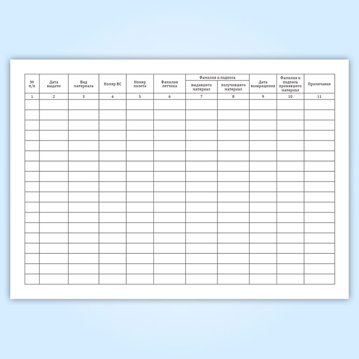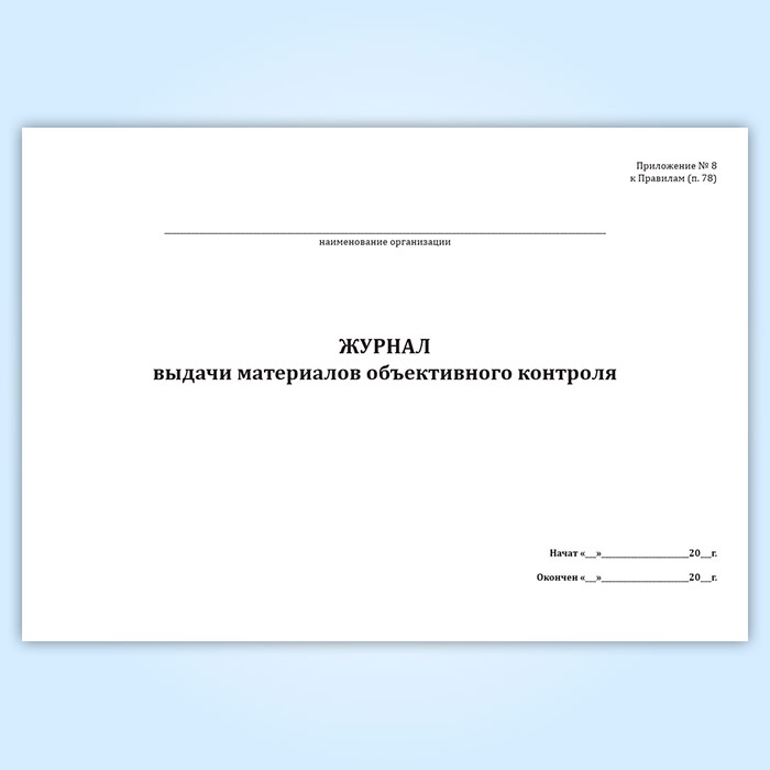 Форма журнала выдачи материалов объективного контроля соответствует Приложению №8 к Приказу Министра обороны РФ от 17.10.2001 N 420 " Об утверждении Федеральных авиационных правил по организации объективного контроля в государственной авиации"