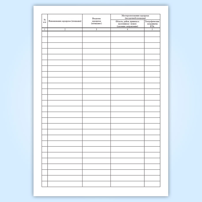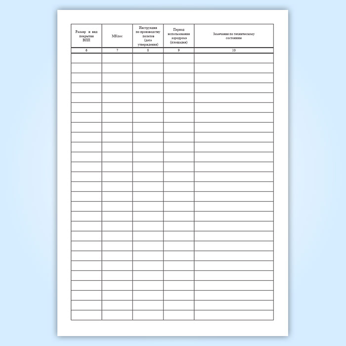 Журнал учета временных аэродромов и посадочных площадок имеет графы: