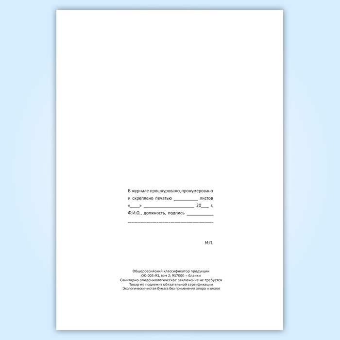 Вы получаете печатную продукцию прошнурованной и c местом для вашей печати в соответствии с действующими нормативными документами: