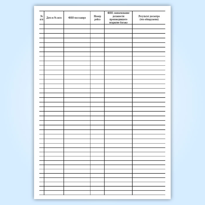 Журнал учета актов досмотра багажа в отсутствии пассажиров